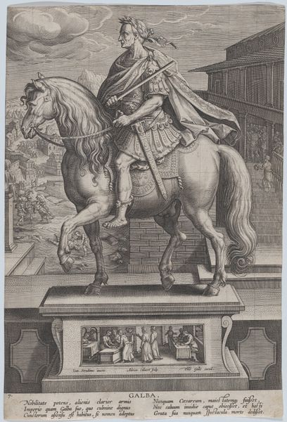 This print, Triumph of Marcus Aurelius, is from the series Speculum Romanae Magnificentiae, and was made by an anonymous artist. The series, popular during the 16th-18th centuries, served as a visual catalog of ancient Roman monuments and celebrated Roman power. Here, we see the emperor Marcus Aurelius in his triumphal chariot, a symbol of military victory and imperial authority. The work is evocative of its time through its depiction of Roman triumph, though it is imagined through the lens of a later era. Consider the power dynamics at play: Who gets remembered in history and who is left out? This print immortalizes a specific narrative of imperial triumph, while countless other stories and perspectives are erased. What does it mean to celebrate military power and conquest? This print encourages us to consider how societies choose to commemorate events and people, and whose voices are amplified or silenced in the process.