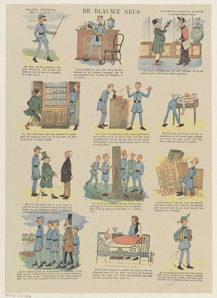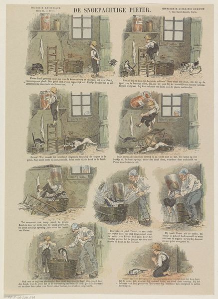 Victor A. Poirson created this print, “De geschiedenis van een marmot,” using lithography, a printing process that allows for highly detailed images. Here, the artist used a lithographic stone or metal plate, drawing the design with a greasy crayon or ink, that attracts ink while repelling water. The stone is then treated with chemicals, allowing the image to be transferred onto paper. Looking at this work, we might consider the relationship between mass production and art. Lithography enables the creation of multiple identical prints, democratizing access to art and visual storytelling. Yet, it also introduces a level of mechanical reproduction that challenges traditional notions of artistic originality and handcraftsmanship. This print hints at the debates of the time regarding the value of art in an age increasingly shaped by industrialization and mass media. It invites us to question how we define art, its role in society, and the ways in which it reflects and shapes our understanding of the world.