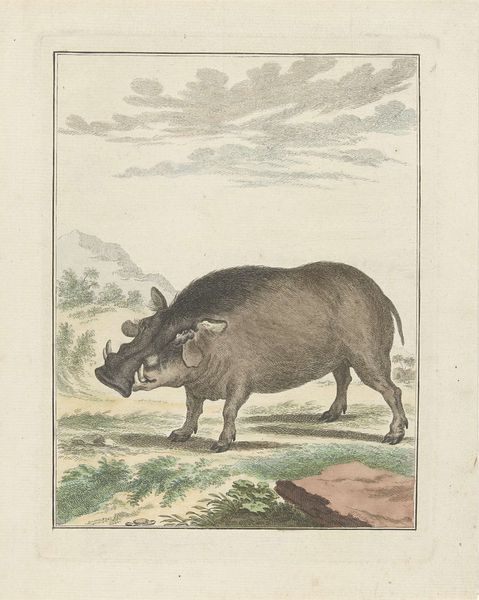 Isaac van Haastert made this watercolor drawing of a tapir around the turn of the 19th century. During this period, the Dutch Republic was a major colonial power, and the study of natural history was very popular. This image speaks to the social conditions that shape artistic production; Van Haastert was connected to a network of scientists, explorers, and collectors. Colonial administrators and military personnel returning from overseas would bring back specimens for naturalists to study, and there was an increasing demand for detailed illustrations to accompany scientific publications. Van Haastert's tapir reflects both careful observation and the limitations of working from second-hand sources; the tapir's anatomy is generally accurate, but the animal has an oddly generic appearance, perhaps due to the artist never having seen one in person. The tapir and its kind were classified using a Linnaean system of taxonomy at the time, reflecting the West's drive to codify all of nature according to its own understanding.