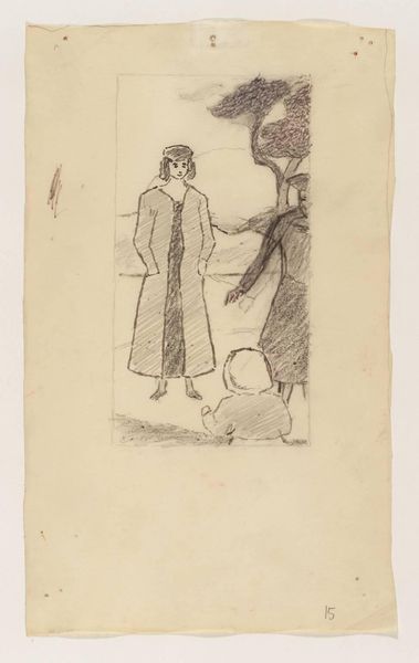 Fabien Launay created this print, "Wandelende vrouw met kind aan hand," which translates to "Walking woman with child in hand," sometime between 1877 and 1904. Launay's work captures a poignant image of motherhood and childhood, rendered with simple yet evocative lines. In the print, a woman and child are depicted in silhouette, their figures flattened against the white background. The choice to obscure their facial features invites the viewer to project their own experiences and emotions onto the scene, creating a universal tableau of familial connection. What does it mean to walk in the world as a woman, as a mother, as a caregiver? The act of walking together suggests a journey, a path forward into an uncertain future, the composition quietly acknowledges the emotional weight of caregiving and its profound impact on women's lives.