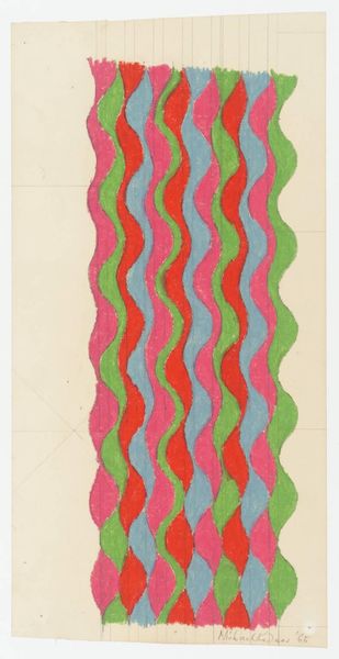 Curator: Standing before us is "Wavy Lines with Black Border" a graphic artwork created by Sol LeWitt in 1997. It's a quintessential example of his exploration of line and form within the realm of conceptual art. Editor: Whoa, first impression? This feels surprisingly joyful for something so…calculated. Like, each color is vibing on its own trip but somehow it all just grooves together. Does that black border serve as some kind of grounding mechanism for this riot of colour? Curator: It’s interesting that you call it joyful! Considering LeWitt’s grounding in conceptualism, which often prioritizes the idea behind the art over its aesthetic execution, one might not immediately associate such exuberance with his work. The colors themselves—red, yellow, blue—are archetypal, almost childlike. The border sets this system in place to allow for almost childish chaos within its perimeter. Editor: Archetypal, childlike—totally. Makes me think of, like, early computer graphics or even those rainbow spaghetti crafts we did in grade school. There's something about the simplicity and directness that's really refreshing, you know? But it definitely feels strategic. It’s like a deliberate un-doing, which gives the work that grounding influence while allowing it to breathe on its own. Curator: I appreciate the tension you've noticed. LeWitt embraced rule-based systems. These 'rules' that artists like LeWitt lay down function almost as modern iconographies. And so, once LeWitt established the concept, he would then leave the actual execution to others to carry it out. Editor: Oh, wow, so he was kind of like a composer writing a score for others to play? I feel that. There’s definitely a feeling of something orchestrated rather than spontaneous combustion. And like all rules that were meant to be broken, I can find a connection between how rigid this form is yet expressive its composition reads. Curator: Precisely. It raises a deeper question: Can predetermined systems generate unexpected beauty or even emotional resonance? He's probing what happens when you impose strict order onto something inherently fluid. The black frame, you see, reinforces this notion; containment leading to artistic freedom. Editor: I think it's beautiful. This kind of makes me want to establish systems of constraints so I can finally create. Okay. Consider me, someone forever impacted by a work that is, essentially, waving at me. Curator: A wonderful thought; one can easily become lost amongst waves if it is not properly controlled. And from an iconographer's standpoint, a geometric pattern may hold keys to understanding the human condition!