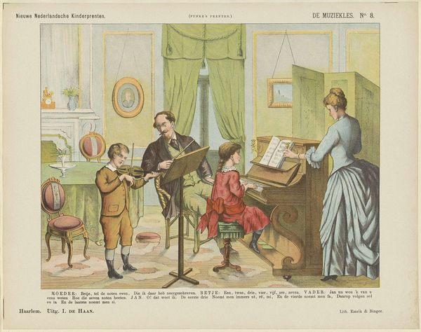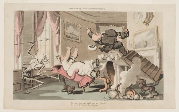 This artwork, by Frederick Burr Opper, likely made for Puck magazine, contrasts the old and new in children's literature through a visually dynamic composition. Opper uses a vertical division, placing a modern boy absorbed in a textbook on the right, and a chaotic array of fairy tale characters on the left. The boy's space is defined by neat lines and order, emphasized by the right angles of the chair and scattered textbooks. In contrast, the fairy tale figures are drawn with exaggerated, almost grotesque features, creating a sense of disarray. The color palette is divided, with muted tones characterizing the modern scene, while the fairy tale world pops with brighter, less naturalistic colors. Opper uses these formal elements to critique the shift in educational values. The structured, formal world of the boy signifies the perceived progress of rational, scientific thought displacing the imaginative, irrational world of fairy tales. This juxtaposition highlights a cultural anxiety about the loss of enchantment in favor of a utilitarian, progress-driven mindset.