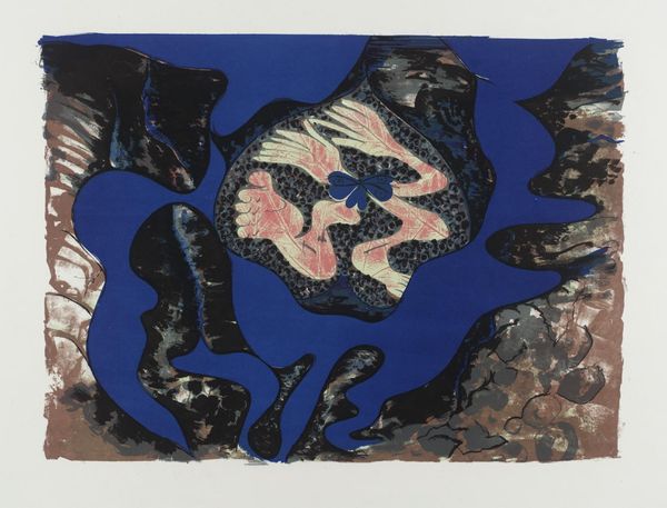Henry Mark made this print called "The Agony of the Innocent" with some kind of printmaking technique and coloured inks. He’s weaving lines and blocks of colour into a web of emotion. It’s a dance between control and letting go, a bit like life itself, right? Look at the surface – the colours are laid down flatly, but the black lines on top vibrate. You can almost feel the pressure of his hand guiding the tool, each line a little journey. In the top left, the lines seem to reach upwards as if yearning for something, or maybe to escape. It reminds me a little of Picasso, in the way he breaks down form and rebuilds it with feeling. But Mark has his own voice, his own way of making marks that speak to the heart. What does it say to you?