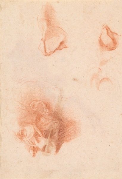 Pompeo Batoni rendered this study of a man's head in red chalk, a popular medium for drawings in eighteenth-century Italy. Batoni was a leading portraitist of the Grand Tour era, when wealthy Europeans, especially the British, traveled to Italy to experience its art, culture, and history. This drawing is intriguing because it departs from Batoni's typical polished portraits of the elite. The upward gaze and the open mouth create a sense of vulnerability. This more intimate portrayal might reflect the shifting cultural values of the time, as artists began to explore deeper emotional and psychological states. The red chalk gives the skin a warm, lifelike quality, emphasizing the humanity of the subject. Batoni’s attention to the musculature of the neck and jawline could express an interest in physiognomy. It invites us to consider how identity was constructed and interpreted through visual representation in the 1700s.