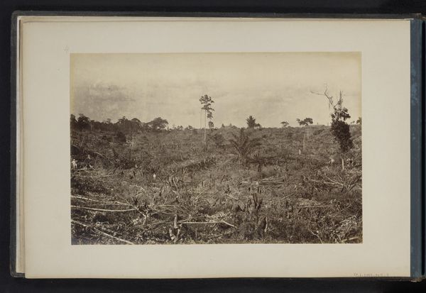 Curator: What a scene of disruption and… is that purposeful order emerging? This gelatin silver print, "Werk in open terrein" which translates to "Work in open terrain," captured sometime between 1900 and 1922 by Robert Julius Boers, certainly has me curious about what kind of labor we're seeing here. Editor: It's striking how muted the landscape appears. Like a theater stage that's had the curtain dropped. There's a rawness to it. Almost unsettling in its depiction of nature interrupted. It seems a strangely neutral rendering of something that is, by implication, extremely charged. Curator: The physical act of transforming the land would certainly be grueling work in this period. Considering the materiality of photography at the time and the techniques that Boers must have been employing with silver and gelatin, you start thinking about this intersection between manual labour on the terrain itself and the skilled processes involved in producing this image. Editor: Right. Because even the seeming straightforwardness of this composition belies a far more complex power dynamic. Land ownership. Natural resource management. Who is it for and who is doing the work? Looking closely at these laborers raises essential questions. Is it forced or free? What community do they represent, and is their identity linked in any meaningful way to the open terrain we are beholding in two views? Curator: It highlights a kind of unsentimental realism. The artist isn't romanticizing toil. The physical tools might also tell stories of their own about resource availability. Also, Boers would need to haul this specialized gear to a location—that, in itself, is another aspect of the working process that should not be overlooked. Editor: I wonder if that labor extends beyond the physical to the political? Are they shaping the land according to the desires and intentions of a dominant power? Considering colonialism and the societal inequalities pervasive throughout this era, this image is a lens through which we can unpack deeper structural problems inherent in capitalism and class struggle. Curator: I agree; the historical and material details can significantly expand the image beyond pure visual consumption, drawing attention to often overlooked contexts and labor relations. Editor: Precisely, that kind of careful consideration prevents the consumption of the artwork as simply aesthetics and redirects that appreciation toward the social dimensions. Curator: This work, I feel, invites us to recognize the value of a holistic and detailed evaluation of any subject at hand. Editor: Yes, for me this piece encapsulates the ability of art to prompt challenging conversations about labor and lived experiences.
