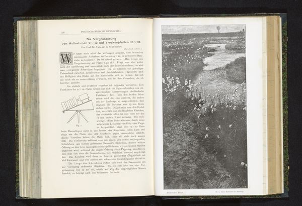 Editor: Here we have pages 134 and 135 from a photo book by J.W. Meyster, dating from around 1924-1925, held at the Rijksmuseum. It's a landscape photo paired with text about coffee cultivation. It feels very documentary, showing a vast expanse of a plantation. What stands out to you in this piece? Curator: This image evokes a powerful sense of the colonial project. It’s not just a picture of a landscape; it’s a carefully constructed representation. Notice how the photograph captures the seemingly endless rows of coffee plants, a visual symbol of order, control, and exploitation of both land and labor. It makes me think about what that repetition signifies. Editor: Exploitation is a heavy word, but it certainly matches the historical context I’m learning about in class. The repetitive rows of plants, it almost feels dehumanizing. Curator: Precisely! That dehumanization is visually represented. Consider the symbolic weight of the plantation in colonial iconography. It embodies the dream of economic prosperity for some, achieved through the forced labor and displacement of others. The ordered rows visually repress the chaos and human cost inherent in this system. Does the photograph romanticize or critique this scene, do you think? Editor: That’s a tough question. On the surface, it seems like a straightforward depiction. But now that you point it out, I see how that perfect order subtly hides a darker reality. It's definitely not as innocent as it initially seemed. Curator: And that tension, between surface appearance and deeper meaning, is where the power of visual symbols lies. It reveals cultural memory encoded in the seemingly innocuous image. Editor: I'll definitely be thinking about that next time I look at any kind of landscape photo. Thanks for opening my eyes to that perspective. Curator: My pleasure. It's a journey of peeling back layers, isn’t it? Each symbol holds stories waiting to be discovered.