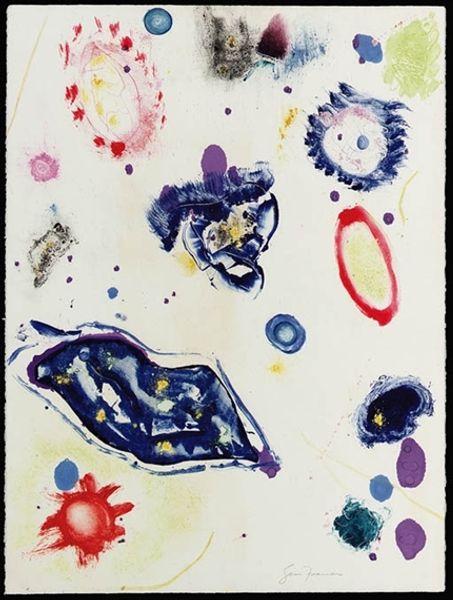 Sam Francis created "Silvio Set One," an abstract painting characterized by vibrant color and dynamic composition. Francis, as a white male artist, occupied a privileged position within the art world, but his personal struggles with health, including a childhood bout with tuberculosis and later cancer, deeply influenced his artistic practice. His work emerged in the mid-20th century, a time marked by shifting cultural identities and the rise of abstract expressionism. Francis’s paintings engage with the emotional intensity of the movement, using color as a primary means of expression. The splashes and blots could reflect the disorienting and isolating experience of illness, or the way our bodies betray us. Francis once said, "The painting is not about what is seen. It is about what is between the eyes." "Silvio Set One" invites us to consider not just the visual elements, but the emotional and psychological spaces between them, a testament to the complex interplay between identity, experience, and artistic expression.