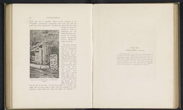 This photograph shows a carved stele at Abhayaghiriya dagaba taken by Henry William Cave. Cave was a British photographer known for his work documenting Ceylon, now Sri Lanka, in the late 19th century. This image captures a carved stele, a stone slab used for commemorative or religious purposes. It's crucial to understand the colonial context in which Cave operated. His photographs were often used to promote British interests and justify colonial rule. They depicted Ceylon as exotic and ancient, reinforcing the idea that it needed to be "civilized" by the West. By examining historical archives, travelogues, and colonial records, we can gain deeper insights into the power dynamics at play in Cave's work and its impact on how Ceylon was perceived by the world. Therefore, the meaning of art is always contingent on its social and institutional context.