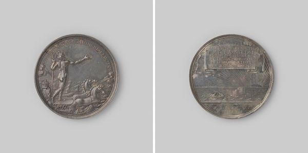 Curator: Let's discuss this metal relief from approximately 1700 titled "Stillen van het oproer te Brussel" or "Quieting the Riot in Brussels," currently held at the Rijksmuseum. It’s by an anonymous artist. What are your initial impressions? Editor: My immediate reaction is one of observing detailed mastery. The use of such limited space to create this relief and give the impression of crowd control in a way that brings focus to all of the detail is an exciting technical achievement. Curator: Agreed. Consider the backdrop against the events of that time period in Brussels. There's the long shadow of Spanish rule and growing unrest among its working class because they're struggling with poor living conditions. How might the imagery used to portray that oppression play on the surface of that tension and turmoil in ways that amplify contemporary social and political viewpoints about what power truly looks like in practice versus theory? Editor: Note the contrast between the crowded backdrop and single authority being featured with great posture. It evokes ideas of balance, order, but perhaps falsely so because it uses depth to create a unique story where we focus primarily on this subject and not all the other components that give context to our authority's story. Curator: Absolutely, and consider the symbolic weight embedded within each allegorical figure or carefully chosen scene. It feels crucial, isn't it, that we acknowledge not just what's represented, but how it relates directly back towards larger questions around power dynamics in society today, given similar struggles happening elsewhere around access rights for basic resources Editor: That makes me reflect further upon the choice of metal. Consider how such an object gives unique, shiny tonal contrasts to draw specific details out using both positive and negative space effectively to capture light effectively, which elevates its form both symbolically and aesthetically by giving certain subjects importance through luminosity against what otherwise could remain unseen. Curator: Indeed. The act of imprinting onto metal during conflict adds further layers connecting historical anxieties about status during the period after these social changes when Brussels transitions culturally. What narrative purpose did using rigid material create for communicating nuanced details within public consciousness amidst all social change occurring throughout the baroque movement within Belgium/what-was-then Flanders, given religious tensions playing out around this work's cultural production time? Editor: As our experience with this piece closes, its technical merits offer viewers plenty. One should observe further to notice skillful utilization depth combined across diverse symbolic details. It reveals more regarding artistic brilliance while opening one’s interpretations, encouraging questioning narratives implied by surface appearances given power structures illustrated! Curator: This sculpture serves not merely memorialization/art but something deeper indeed - serving catalyst prompts more insightful reflection social orders continue to resonate worldwide amidst present sociopolitical realities affecting working class individuals worldwide!