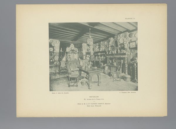 This photograph by G. Choppinet captures a Renaissance-style bedroom in the house of J. vanden Peereboom in Anderlecht, Belgium. The room is dominated by ornate wooden furniture and elaborate carvings, a style that evokes a sense of classical revival. The architectural and decorative choices within the room speak to a deliberate attempt to connect with the grandeur and humanistic ideals of the Renaissance. The fireplace, adorned with sculptures, is reminiscent of classical altars. We see a desire to revive the forms and motifs of antiquity. The Renaissance, in its time, looked back to classical antiquity for inspiration, much like this room seeks to recapture the Renaissance spirit. This cyclical return to past styles illustrates our deep-seated need to find meaning and stability by connecting with historical precedents, a recurring pattern in cultural expression. In our collective memory, these forms resurface, carrying echoes of their original contexts while adapting to new cultural landscapes.