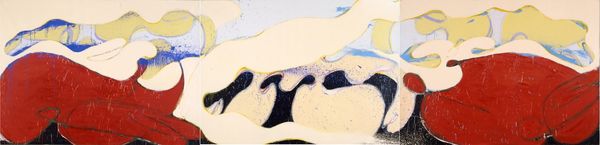 Editor: This print by Patrick Heron in the Tate collection features these amoeba-like shapes in yellow and orange against a vibrant purple backdrop. It feels both playful and a bit mysterious. What do you see in this piece, especially considering the time it was made? Curator: Well, looking at Heron's work through a historical lens, his embrace of abstraction in the post-war period was a deliberate move away from representational art tied to nationalistic agendas. The decentralization of form mirrors a societal shift, right? Editor: That's interesting. So the ambiguity is part of the point? Curator: Exactly! And consider the institutional context. The rise of abstract expressionism was heavily promoted by institutions, subtly aligning with Cold War ideologies of freedom. This work plays into that context. Editor: That gives me a lot to think about. Thanks! Curator: My pleasure. It highlights the complex interplay between art, politics and cultural narratives of the time.