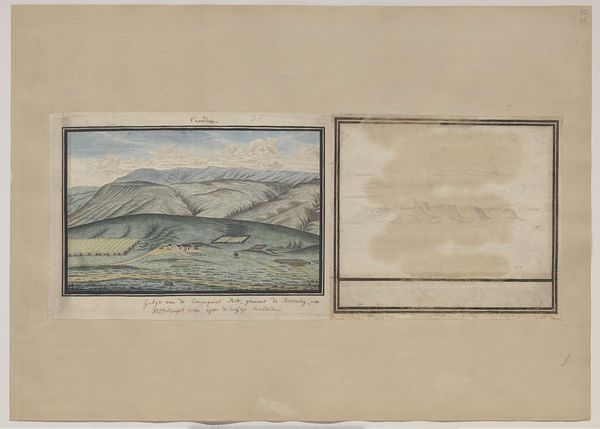 Curator: Here we have Robert Jacob Gordon's "View of the mouth of the Orange River from the west-south-west," likely created between 1779 and 1781. It's an ink drawing presenting a panoramic landscape. Editor: It’s strikingly bleak. A near monochrome rendering evokes such a profound feeling of desolation; the lack of color suggests barrenness, maybe even hopelessness. Curator: I’m fascinated by the way Gordon structures the composition. He separates the drawing into distinct registers, each presenting a different vantage point on the landscape. The use of line and perspective offers a rational and objective representation, characteristic of the Enlightenment's scientific impulse. Editor: Rational, perhaps, but it’s a vision complicit in colonial exploitation. Remember that Gordon was a military man working for the Dutch East India Company. This isn't an innocent landscape; it’s a survey, a claim staked on Indigenous land, paving the way for resource extraction and domination. The starkness you call objective, I see as the cold gaze of the colonizer. Curator: You raise a crucial point about the historical context. Still, it’s undeniable that the technique is remarkable. The precision in the linework and the rendering of spatial depth... these are not just tools of observation, but demonstrations of skill. Look how he manipulates the line density to create depth in the image; in particular, the mountains ripple on the bottom plane. Editor: Skill employed in the service of empire. Think about the communities displaced and disrupted by colonial mapping and resource exploitation, erasure facilitated by seemingly "objective" depictions like this. The beauty is tainted by the ugliness of its purpose. We must question the motivations behind even the most technically proficient art. Curator: Certainly, the drawing compels us to grapple with complicated ethical questions, forcing the viewer to look beyond conventional categories like beauty. But even knowing all of that, the deliberate rendering is superb. Editor: Precisely. We’re left with the conundrum: the drawing invites aesthetic consideration while demanding that we confront its troubling colonial legacy.