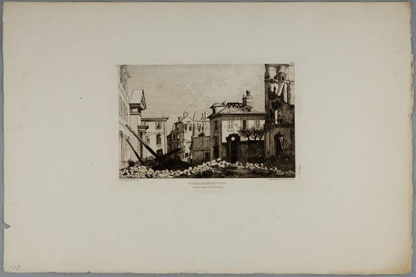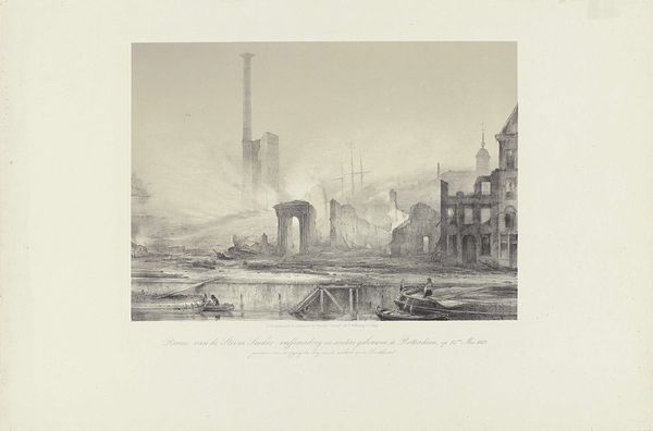 Editor: So, here we have Robert Swain Gifford’s "Coal Packets at New Bedford." It's a small, monochromatic print – looks like an etching. It feels kind of bleak, but also industrious. What jumps out at you when you look at this? Curator: It's interesting how Gifford captures the grittiness of industrial life with such delicate lines. The sharp contrast of the coal packets against the open sky feels deliberate, doesn't it? Like a visual poem about the meeting of nature and industry. It really makes you wonder about the cost of progress. Editor: I hadn't thought about it as a visual poem! That's a beautiful way to put it. I was so focused on the gloom. Curator: Perhaps Gifford saw beauty in the everyday, even in the harsh realities of industrialization. What do you think Gifford may have been trying to achieve here? Editor: Maybe he wanted to show both sides? The bleakness but also the kind of stark beauty of it all? Curator: Exactly! And that’s where art gets exciting, isn't it? It invites us to see the world, and perhaps, ourselves, in new ways. Editor: Definitely something to think about.