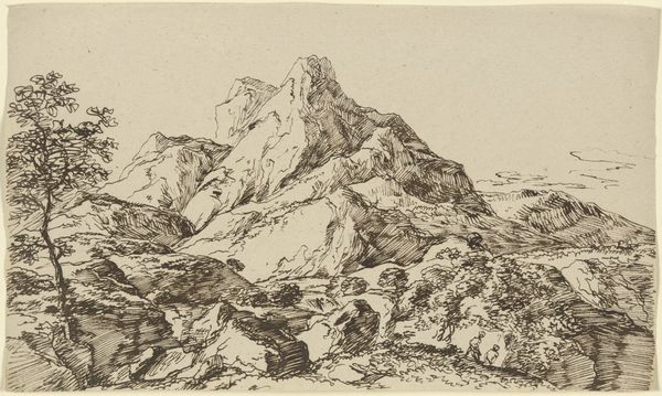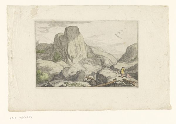 Editor: Right, let's talk about this etching. It's called "Twee koeien in een weide bij een hek," or "Two Cows in a Meadow Near a Fence," made around 1818-1819 by Jan (I) Kobell. It's surprisingly charming for just being…cows. There's a sense of quiet contentment, like a summer afternoon nap. What do you make of it? Curator: Oh, that’s a sweet way to put it! I love how seemingly simple subjects can evoke such complex emotions. This isn’t just cows in a field, is it? It feels like Kobell's celebrating a very particular kind of pastoral idyll. Do you see how he captures the texture of the cow's hide with those delicate etched lines? And the composition, with one cow reclining while the other grazes, creates this lovely sense of balance. It's almost like he’s frozen a peaceful moment in time, a snapshot of rural life. Editor: Absolutely! The texture is great, almost tactile. But it is a bit… uneventful, maybe? Like, nothing much is *happening*. Curator: That's precisely the point, isn't it? The “nothingness” is the experience! Perhaps he found beauty in the mundane. These are the landscapes people know from experience – fields and animals. What if he’s suggesting the extraordinary lies within the ordinary? Or what feelings arise when looking at this landscape from the city? Editor: Hmm, I guess I was expecting more… drama. But seeing it as appreciating the simple things, a celebration of the everyday... that gives me a whole new perspective. Curator: And there you have it. It’s the unexpected in the commonplace, like finding a small wildflower in a vacant parking lot! Maybe that’s what great art always offers – a chance to look, and then truly *see*.