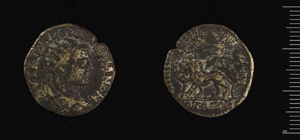Editor: This is a Follis of Galeria Valeria, from Alexandria, a coin. It's quite small and worn. What can you tell me about its historical significance? Curator: Coins like this weren't just currency; they were instruments of imperial propaganda. Galeria Valeria was the wife of Emperor Galerius; distributing these coins throughout the Roman Empire was about publicly legitimizing his rule and showcasing his family. Editor: So it was like a political poster in metal? Curator: Exactly. The imagery, even the very act of minting and circulating these coins, was a performance of power. What do you make of the imagery itself? Editor: Knowing that changes how I see it; it's not just money, it's a message. Curator: Precisely. And that message shaped the perception of imperial authority.
