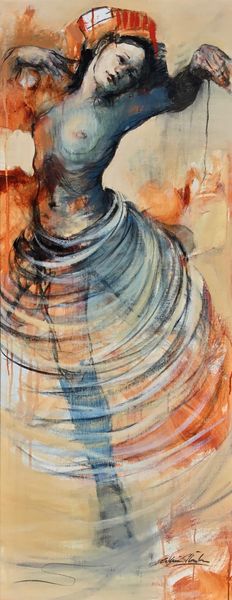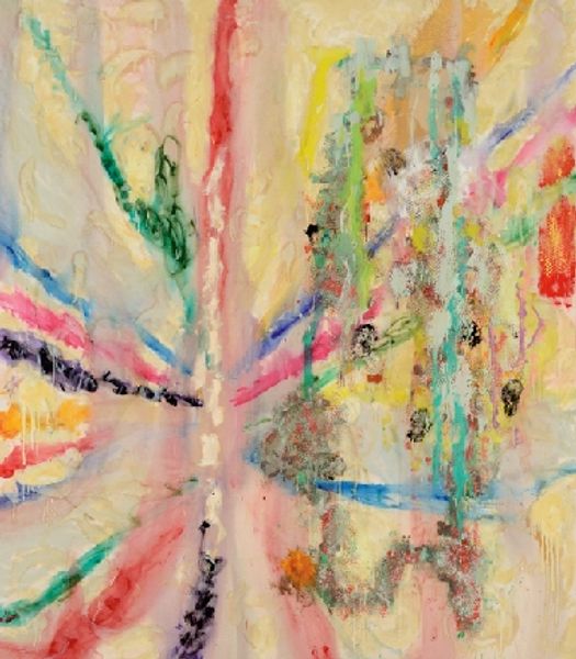 Editor: This is “Red Chucks,” an acrylic painting from 2011 by David Michael Hinnebusch. It feels chaotic, almost frantic, with all the dripping paint and layers. There seems to be a figure, perhaps a nude, amidst all the abstraction. What do you see in this piece? Curator: Indeed. Let us analyze the formal elements. Note the impasto technique, the thick application of paint that creates a tactile surface. Consider the interplay between figuration and abstraction. Is the subject truly a figure, or merely an echo of one, suggested by the lines and colors? Editor: So you’re saying the artist is more interested in the process of painting than accurately representing something? Curator: Precisely. Observe the dominance of red – its various shades and intensities command the eye. Red acts as both a structural element and a disruptive force. Are those wave-like forms grounding the figure or threatening to overwhelm it? The ambiguousness of representation opens endless readings. What function does the impasto serve? Editor: The thick paint makes the surface more active and three-dimensional, I guess. It's like the painting is fighting against being just a flat surface. It also brings a tactile, tangible feel. Curator: Precisely. And the texture becomes a crucial part of the composition. The drips further dissolve form. How does that contribute to the experience of viewing this artwork? Editor: I think the drips emphasize the fleeting nature of the moment. That's interesting because the impasto is all about mass, so that contrast is crucial. I hadn’t noticed the waves before either! Curator: Exactly, observe all relationships on the picture plane to gain an appreciation. Through semiotic analyses, the artist presents many facets. Editor: I understand now. I never thought of abstract art in this detail. Thanks for pointing those aspects out! Curator: My pleasure. Understanding artistic intentions is revealed in their method.
