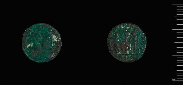 Editor: This is a Consecration Coin of Constantine I, minted in Alexandria. Its green patina gives it an otherworldly feeling; what significance might these symbols have held? Curator: Indeed, the patina speaks volumes – it's the accumulated memory of the object. Consider what "consecration" means. How might this coin have bridged the earthly and divine realms for its original users? Editor: So, it's less about monetary value and more about the symbolic power imbued in the image itself? Curator: Precisely. Think about the weight of Constantine's image. What did it represent during a period of massive religious and political transformation? The coin broadcasts that message through time. Editor: Fascinating, it's a powerful little artifact with so much to unpack! Curator: Absolutely, a symbol carrying the weight of an empire.