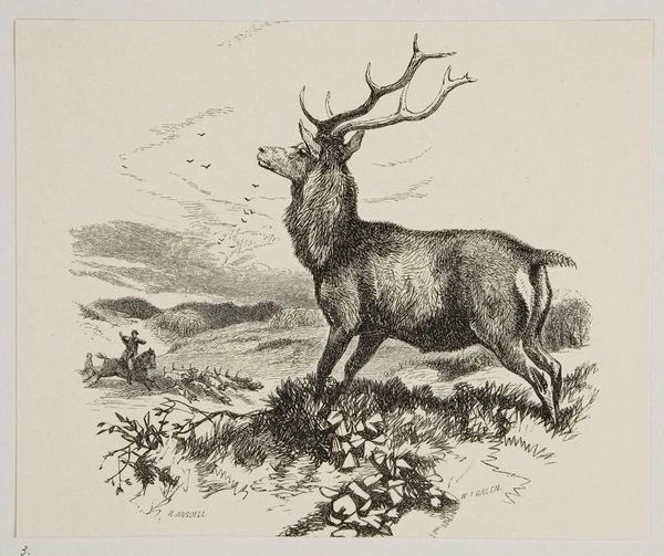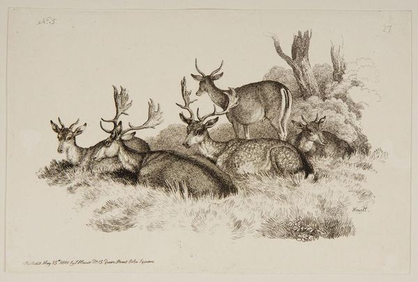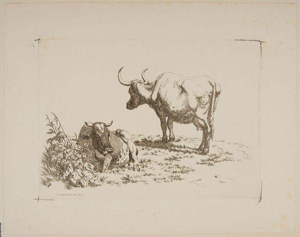 Editor: This is "Goats" by August Koellner. It looks like an illustration, maybe for a book. They're just lying there, so relaxed. What do you see in this piece? Curator: It's fascinating how Koellner chooses to depict these goats. Consider the time period, perhaps the 19th century. How might this image have been used to portray ideas about rural life or animal husbandry, and its place in the growing industrial world? Editor: So, more than just farm animals. What was the public role of art back then? Curator: Absolutely. Prints like these shaped how people understood the natural world. They were tools of knowledge, reflecting and reinforcing societal values. Editor: I never thought about that! I'll look at illustrations differently now.