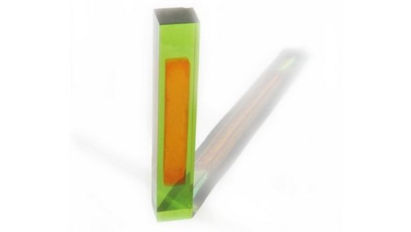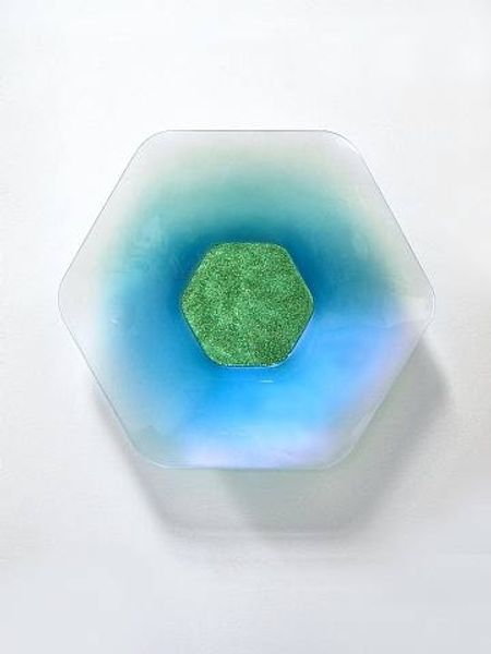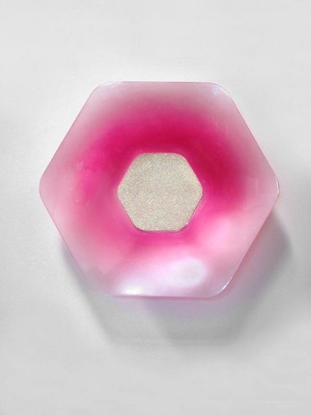 Curator: Fred Eversley’s “Untitled” piece from 1967 presents a captivating study in light and form, achieved through resin. The interplay of geometry and light is immediately striking. What's your take, from a purely visual perspective? Editor: Intriguing. It feels quite cool, almost glacial, despite the bright teal. The perfectly smooth surfaces and the geometric form are deeply satisfying to look at. The light it casts makes you want to touch it. Curator: Indeed. Eversley’s approach merges art with engineering—he worked at NASA previously—reflecting his deep understanding of physics. The resin he used here was probably at the cutting edge of material science at the time. Its inherent properties shape how light interacts. It speaks to post-war optimism through technological innovation, wouldn't you agree? Editor: The medium certainly lends itself to a particular kind of Minimalist aesthetic. How its structure plays with both internal and external light creates a captivating illusion. You know, light is distorted and reflected depending on the angle we choose to view it, a real lesson in optics here. Curator: Absolutely. It's important to note also, that Eversley ground and polished this piece himself using self-built machinery to bring out the reflective and refractive properties. This challenges the distinction between art, craft and the use of technologies for aesthetic practices, don't you think? Editor: Interesting idea about the boundaries being challenged here. This piece, for me, communicates pure aesthetic feeling, thanks to its elegant and hard edges, simple geometry, and monochromatic saturation. Curator: Ultimately, "Untitled" invites us to question traditional distinctions of artist/technician. The making of the artwork reveals both the properties of resin but also an emerging technological process, revealing a complex cultural perspective of the artist, challenging traditional understandings of artistic creation and labor. Editor: It does. Well, seeing how such a simple, yet elegant geometric shape casts its ethereal light across space certainly creates an unforgettable experience. Thank you for sharing, that gives a more informed insight and deeper reflection of this captivating gem.
