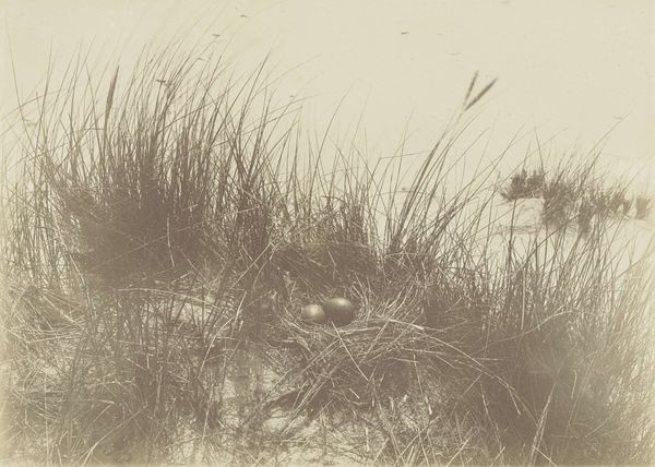 Curator: There’s something profoundly melancholic about this image, don't you think? It’s as if time itself is wearing down to a sepia tone. Editor: You're right. The mood is definitely subdued. We’re looking at "As Daylight Fails", a gelatin silver print likely created in the late 19th or early 20th century by William B. Post. It’s part of the collection here at the Minneapolis Institute of Art. What do you think stands out? Curator: Those stooks, or shocks, of wheat. They look like huddled figures, bowing to the inevitable twilight. It makes me think of transient things, like harvest cycles or the arc of a life. Editor: Precisely. That theme of temporality was key in pictorialism, and Post’s involvement in organizations such as The Linked Ring foregrounded debates about photography as fine art in public exhibitions. Note how he softens the details to evoke atmosphere and mood. It's not just a documentary record. It's intentionally painterly, isn’t it? Curator: Absolutely. You can practically feel the silence of the field. It feels as if Post staged a quiet scene using elements drawn from Realism. The entire composition steers away from the documentary and embraces symbolic weight. Editor: And it speaks to anxieties of that period, I think, the fin de siècle feeling as rapid industrialization transformed rural landscapes and traditions. The aesthetic, by embracing muted tones and focusing on simple rural images, speaks to those displaced during the urbanization of the era. It also provided an argument to show the "artistic" merit of photography to new audiences. Curator: You’re right; photography found an early champion in questioning those values. Considering Post's involvement, it brings us to reflect on both the aesthetic choices and the social currents feeding this photograph. Makes you wonder what daylight revealed, and what shadows concealed for Post. Editor: Indeed. In a way, this work is more about evocation than description. I’d wager Post intended it that way, prompting future generations to question their understanding of what it meant to preserve something through photographic practice.