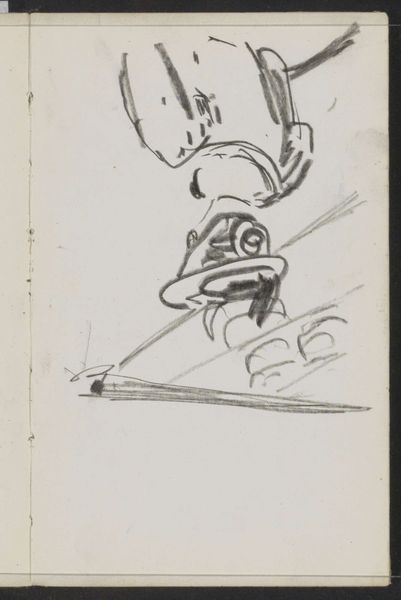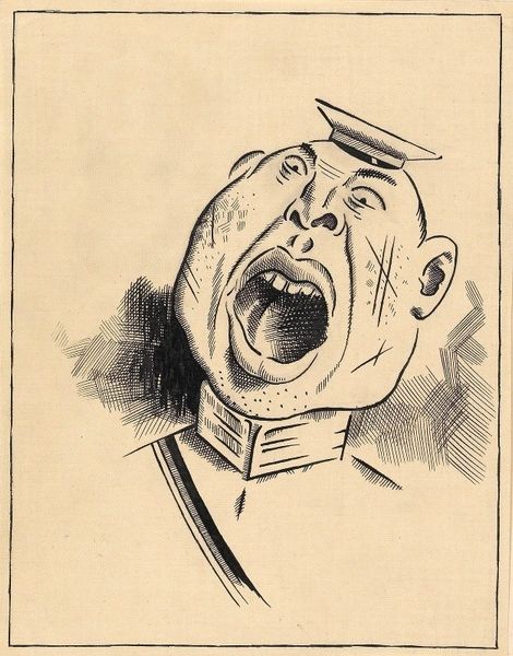 Editor: So, this "Untitled" piece is a 1941 drawing in ink and pen by the Kukryniksy collective. It definitely has a satirical tone, and the use of stark black and white adds a lot of visual punch. How do you interpret this work's imagery? Curator: Immediately, I’m struck by how those descending bullet shapes act as potent symbols. Consider the visual weight they carry, not merely as ammunition, but as instruments of death and oppression during wartime. They rain down upon caricatured figures – the bloated face with the spiked hair signifying Hitler, and another German officer with the swastika on his helmet, both looking utterly disheveled. Editor: The exaggeration is extreme, like a political cartoon. Curator: Precisely! And what does caricature do? It amplifies features, turning them into readily digestible visual symbols of larger ideas, inviting condemnation and ridicule. Look at the officers’ expressions; it almost evokes a sense of fearful acknowledgement. Editor: So, even within the caricature, there's still a kind of deeper symbolic reading at work? Curator: Yes, and in this context, their expressions signal a vulnerability that stands in stark contrast to the Nazi propaganda of strength and invincibility. This contrast becomes another symbolic element – one of crumbling power under relentless fire. Does it give you pause to consider how simple ink lines carry such an enormous ideological weight? Editor: Definitely! It really makes you think about how artists can use even basic materials to send really powerful messages. I learned a lot today. Curator: As did I. These artists use familiar iconography to challenge viewers to think critically about power and its potential for corruption.