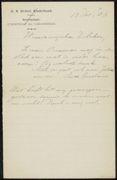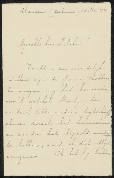 Editor: So, this is "Brief aan Philip Zilcken" by Marie Metz-Koning, likely created sometime between 1888 and 1905. It's a letter, rendered in pencil and ink on paper, and mounted on textile. What jumps out to me is the almost ethereal quality of the handwriting. What strikes you most about it? Curator: Primarily, my interest lies in examining the formal qualities of the piece. Note the deliberate arrangement of the text upon the page, its structure; how the strokes of ink articulate a rhythm that transcends the literal message. Observe the variation in pressure used to create a depth that one wouldn’t normally associate with script. This interplay creates a nuanced, visually compelling experience. Does the directionality suggest any narrative intention to you? Editor: I hadn't really considered directionality beyond it being written top to bottom. Does that contribute to the mood, or is it more of a compositional element? Curator: Consider the semiotic potential. A diagonal trajectory, for instance, could suggest urgency or dynamism, while the consistent verticality speaks to control and considered deliberation. It encourages viewers to investigate how the structure of its elements affects their impression. What can we decode from its composition, beyond simply interpreting the text? Editor: So, we can see the text itself almost as the subject, considered apart from its meaning, and analyzed just for its structural and aesthetic qualities. Curator: Precisely. And by employing a systematic framework, we reveal layers of meaning that extend beyond conventional textual interpretation. It’s an exercise in perceiving the inherent order within what might initially seem to be just functional script. What I see here is form elevating function. Editor: I see the value of this approach in understanding art at a different level, finding the underlying composition rather than getting caught up with subject alone. Curator: Exactly, it’s a lesson in appreciating the formal scaffolding beneath any work of art, revealing how deeply interwoven the elements are to shape experience.