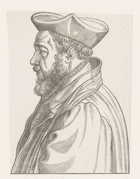 Editor: So, here we have Leonard Schenk's "Study of a Male Head with Head Covering," created sometime between 1710 and 1767. It's an engraving. There's something… theatrical about it, the way the light falls, almost like a character in a play. What jumps out at you when you see this? Curator: Theatrically is right! It's almost like a costume study, wouldn't you say? The cross hatching is amazing. But beyond technique, I feel an invitation here, perhaps even a subtle mockery. Is he a sage or a fool, hidden beneath that curious headgear? The precision feels almost satirical, a gentle jab at the pompous academics of the time. Do you sense that tension? Editor: I can see that! I was so focused on the overall dramatic lighting, but now that you mention it, the minute details in the beard, for example, really do seem almost exaggerated. So, do you think Schenk intended it to be satirical? Curator: Intention… ah, that’s the eternal question, isn't it? I prefer to think of it as playful, leaving breadcrumbs of ambiguity for us to interpret. It hints at seriousness, but there’s a glint in those expertly etched eyes that suggests otherwise. Maybe he's poking fun at the *idea* of wisdom, not any particular wise man. What do you reckon? Editor: That's a great point. I like that reading—more playful than outright critical. Looking closely, there's a certain warmth in the subject's gaze that might get lost otherwise. Thanks, I wouldn't have caught that initially! Curator: Absolutely. And who knows? Perhaps this exercise sharpened my own wits, as well. Another layer revealed, like peeling back the layers of an old manuscript!