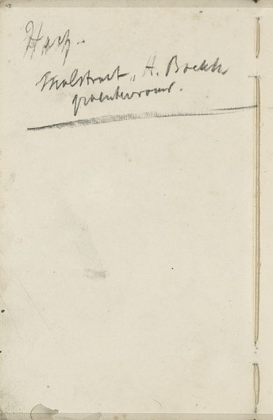 Cornelis Vreedenburgh made this note, probably with graphite, sometime in his life. It’s just a simple annotation, a fleeting thought captured on paper, and that’s what makes it so interesting. The texture of the paper is smooth, almost creamy, inviting touch. The pencil glides across the surface, leaving a trail of delicate gray marks. The words themselves are a bit of a mystery “Kings Hotel South Place” – a destination, a memory, a fragment of a story? Look how he looped the ‘H’ in Hotel. So elegant. The artist is known for his cityscapes and landscapes, so maybe this was a scene that caught his eye. The off-white of the paper feels like a blank canvas, waiting to be filled with potential. It reminds me of Giorgio Morandi's quiet, unassuming still lifes. Both artists teach us to find beauty in the ordinary, in the overlooked corners of our world. The beauty of the everyday.