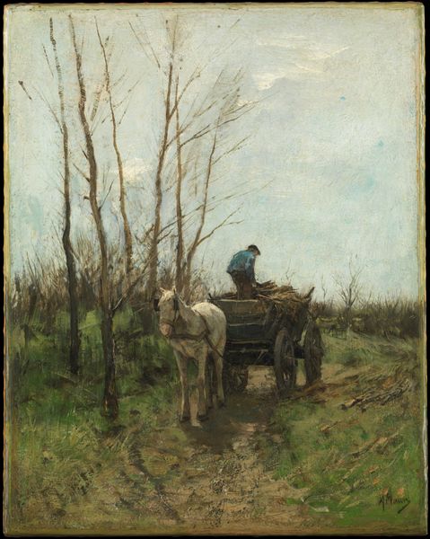 Hans Smidth painted this landscape with oil on canvas. The open road, an enduring motif, invites us to ponder its symbolic weight. Notice the man walking. His back faces us, yet the open road suggests a journey—a departure, perhaps. Such a path, laden with archetypal significance, echoes throughout art history. Consider the "wanderer" motif, from Caspar David Friedrich's solitary figures to the pilgrims of religious art. This visual trope engages our collective memory, touching upon the universal human experience of seeking direction. The road itself, under a sky of grey, is not merely a physical route but a symbol of life’s journey. It raises questions about fate, purpose, and the paths we choose, or that are chosen for us, resonating on a deeply personal level. This image speaks to the cyclical nature of human experience: the path is never truly new, but always a reinterpretation of journeys past.