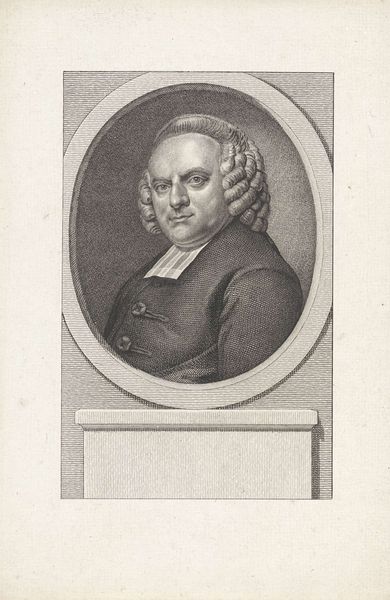 Editor: This is Georg Friedrich Schmidt’s "Dinglinger," an engraving. It gives the impression of texture, especially in the fur. What do you see in its composition and execution? Curator: The meticulous hatching and stippling articulate a clear tonal range. Note how the artist’s strategic use of line weight defines form and texture within the oval frame. Observe, too, how this emphasis shifts viewer attention. Editor: Shifts it where? Curator: Primarily to the face, where the lines are finer, capturing nuances of character. It is this contrast that enlivens the portrait, I think. Editor: I see that now; the face does seem to emerge more. Curator: Indeed, the artist's manipulation of visual elements creates a compelling study in contrasts, doesn't it?