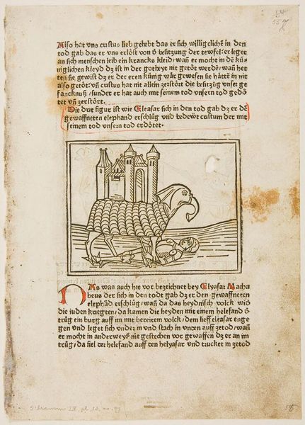 Editor: This is an intriguing image: *Tower of Baris signifying Virgin Mary; verso: Tower of David with its thousand bucklers, signifying the Virgin Mary*. It's an anonymous work. I'm struck by the figures patrolling the walls; it feels symbolic. What do you see in this piece? Curator: The towers themselves are powerful symbols. Towers represented the Virgin Mary's purity and strength, a fortified refuge. The soldiers protecting the tower on each side represent the dual nature of earthly and spiritual defense. Editor: So, the towers are not just buildings but metaphors? Curator: Precisely. They are visual allegories, linking earthly structures to spiritual ideas. The image invites us to consider how visual forms embody cultural memory and religious concepts. It’s like a container for faith. Editor: I never thought of towers representing purity. That’s a fascinating connection!