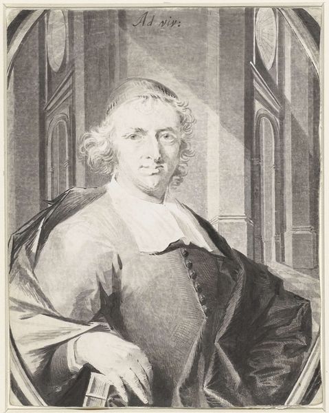 This portrait of a preacher, possibly Jacobus Groeneveld, was created by Charles Howard Hodges, likely in the late 18th or early 19th century. It is made with the technique of mezzotint, a printmaking process in which a copper or steel plate is systematically roughened, then selectively burnished smooth to create an image. Mezzotint, literally meaning "half-tone", was prized for its ability to produce rich tonal gradations and velvety blacks. But it was incredibly laborious. First, the entire plate had to be worked over with a tool called a "rocker," creating a dense network of tiny burrs. The printmaker would then scrape and polish areas of the plate to varying degrees, creating the lighter tones. The labor is what you're seeing. Hodges, who was renowned for his skill in this medium, would have understood how this process could be used to suggest character. The soft, diffused light and shadow lend the sitter a sense of gravitas. The time involved in the production also elevated the status of the sitter. By attending to materials and making, we can understand this portrait not just as a representation of an individual, but as an object imbued with social and cultural significance.