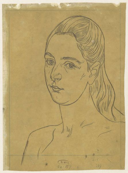 Editor: So, this is "Portret van Anna Dorothea Veth-Dirks" by Jan Veth, made sometime between 1874 and 1925. It’s an ink drawing on paper, currently housed here at the Rijksmuseum. I'm immediately struck by how raw it feels, almost unfinished. What do you see in this piece? Curator: I see a powerful interrogation of the portrait as a commodity. The very materials – ink and paper – are readily available, cheap even. Consider the labor: swift, economical lines that prioritize essence over meticulous detail. This wasn't about creating a precious object but rather a functional likeness. Editor: Functional how? What was its purpose? Curator: Perhaps it was preparatory – a sketch for a larger painting, or maybe a study of character. The materiality speaks volumes about the artist's intent. Was it intended for public consumption or private reflection? What kind of value was it supposed to have, compared to say, a full painting? Editor: So the materials and process inform how we value the work? Curator: Precisely. We often elevate oil paintings on canvas as "high art" due to the perceived skill and expense involved. But drawings like this force us to question that hierarchy. The immediacy of the ink, the stark contrast of black and white – it challenges notions of artistic preciousness and highlights the labour of creation. The visible evidence of the hand makes it approachable and intimate. The choice of simple materials elevates this from a mere image to a material exploration of subject and medium. Editor: That’s a completely different way of thinking about portraiture. I guess I usually think of portraits as trying to capture the inner soul, but you’re saying we should think about the actual *stuff* that it’s made from, and the artist’s work. Thanks! Curator: Exactly. By examining the material conditions, we uncover deeper insights into the work’s meaning and value.