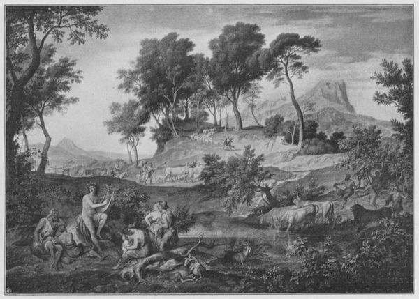 Curator: This is "Laban Searching for his Stolen Household Gods" by Bartolomé Esteban Murillo, painted between 1665 and 1670. Murillo, of course, was a leading artist of the Spanish Baroque. Editor: My first impression? It's incredibly busy. The composition feels almost theatrical, with so many figures populating this broad, panoramic space. Curator: Precisely! This depicts a scene from the Book of Genesis, where Laban confronts his son-in-law Jacob, accusing him of stealing his household gods, or teraphim. It is worth noting that these were objects often associated with domestic power and lineage. Editor: I'm drawn to the central figures: Laban and Jacob locked in what looks like a very heated discussion. Murillo masterfully uses their gestures and positioning to create a sense of confrontation. The fabric, the drapes - all the materials here, bring texture to the scene. Curator: Yes, and note the women clustered around the tent, particularly Rachel concealing the idols she stole by sitting on them. It highlights the complicated roles women played within patriarchal structures. The teraphim, as symbols of power, being literally hidden by a woman... It speaks volumes about covert resistance. Editor: I see that. It is visually compelling how Murillo distributes light throughout the canvas, guiding our eyes to key figures. It is masterful how he articulates the tension without cluttering up his artistic style. Curator: The surrounding landscape isn’t mere background, it functions as a crucial element contextualizing the nomadic lives and familial dynamics being represented. I consider this narrative deeply entrenched in the themes of inheritance, power, and the struggle between tradition and change that are constantly at play. Editor: The landscape in question provides such subtle dynamism. Note the mountains contrasted with a stream of running water. He does manage to imbue so many narrative elements into the composition itself, it really is something. Curator: Ultimately, the painting presents an intimate window into the dynamics of identity, family, and cultural inheritance, particularly concerning the subjugated and underrepresented parties in the narrative. Editor: I concur. Through his artistic technique, Murillo constructs a landscape not merely for viewing but also for critical and introspective engagement. Thank you for helping unpack some of this rich symbolism.