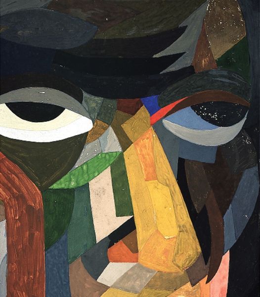 Dindga McCannon made this painting, titled Woman #1, without a known date, using confident strokes and a palette that feels both bold and intimate. I am struck by how McCannon builds the figure and ground through a series of flat, angular planes. There's an almost collaged effect, as if the image were pieced together from fragments of color. The browns and ochres of the figure contrast with the surrounding blues, reds, and greens, creating a dynamic tension. Look closely at the way McCannon handles the hand resting on the knee. It’s rendered with a delicate touch, a subtle modulation of tone that brings it to life. The painting seems related to the work of Lois Mailou Jones, another African American artist, who like McCannon, explored abstraction and figuration with an eye towards social and political themes. There's a sense of experimentation here, a willingness to play with form and color, that I find incredibly appealing. The painting feels alive, open to interpretation, and full of possibilities.