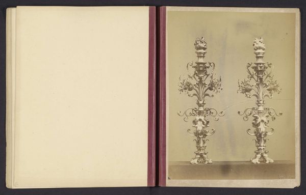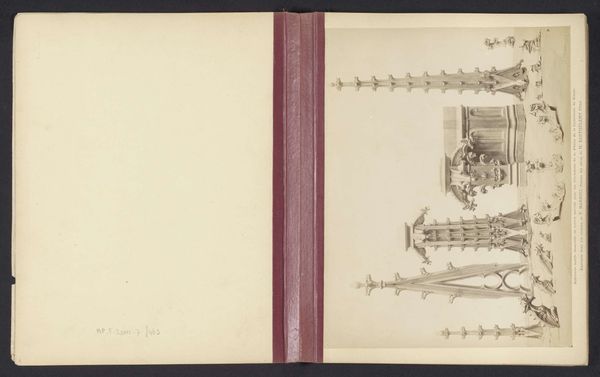 This is a rendering of a lantern decorated with leaf motifs, made by Witz et Cie. Imagine the streets, dimly lit before the glow of gas lamps transformed city nights. These lamps weren't just functional; they were symbols of progress, modernity, and public safety during the Industrial Revolution. The intricate leaf designs, though seemingly ornamental, speak to a desire to bring nature into the increasingly industrialized urban landscape. Think about the class dynamics at play here. Who benefitted from the light? Whose lives were made safer, and which neighborhoods were prioritized? These lamps were a reflection of societal values, illuminating certain paths while leaving others in shadow. The artist's choice to depict the lantern with such detail invites us to consider the artistry and craftsmanship involved. It also prompts us to question the politics embedded within these objects and the power dynamics of light and darkness in the city.