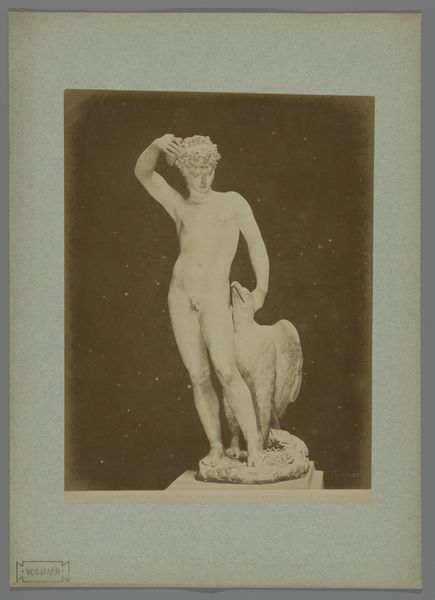 Editor: Here we have Giorgio Sommer’s photograph of the Farnese Atlas, taken before 1879. It’s quite striking; the stark contrast makes the figure and celestial globe feel incredibly weighty. How do you interpret this work in its historical context? Curator: Well, seeing this image brings to mind the rise of archaeological photography in the 19th century. Consider why Sommer chose this specific sculpture, of all the possible antiquities. It was arguably a celebration of Western knowledge, right? Atlas, burdened with the world, symbolizes a particular kind of… burden. Editor: Burden? What do you mean? Curator: The acquisition and display of antiquities from around the globe certainly reflects not only art appreciation, but also European imperial power and the 'burden' of civilizing the rest of the world, supposedly. The original sculpture itself speaks of ancient power dynamics. But photographed, published, and distributed – this image reinforces specific narratives about civilization and knowledge. Do you see what I mean? Editor: I think so! It's like, the photograph isn’t just showing the statue; it’s participating in a whole system of beliefs and power structures. So, even a seemingly straightforward image of a classical sculpture can be loaded with social and political implications. Curator: Precisely! And consider who would have viewed this photograph then, and who views it now in the Rijksmuseum? The meaning shifts again, highlighting how museums themselves shape understanding. Editor: It’s amazing to think about how much a photograph can reveal, beyond just what’s visually present. Thanks for helping me see the broader context at play. Curator: My pleasure! Thinking about art's journey through history—from its creation to its display and interpretation—always offers fresh perspectives.