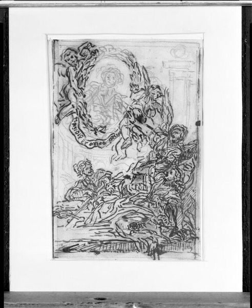 Curator: This is a fascinating engraving, "Theseus and Bellerophon," a small but powerful piece, about 11 by 16 centimeters, currently housed in the Harvard Art Museums. The artist remains anonymous. Editor: Wow, it feels so energetic! Even in this monochrome, the movement practically leaps off the surface. I love the winged horse – so free! Curator: Precisely! It speaks to the heroic narratives prevalent at the time, and how even now, those narratives still resonate. This speaks to the role of masculinity in power and control of mythical beasts. Editor: I never thought of it that way, but you're right. All that swagger can be a bit much sometimes. Curator: Indeed. It reveals layers of social and gendered power dynamics embedded within classical mythology. Editor: Well, I'll still admire Pegasus for its grace, but I'll also remember to look beneath the surface. Thanks for the insight! Curator: My pleasure. Art is always a reflection of something more.