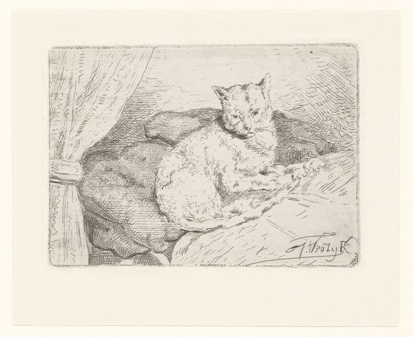 Charles Verlat made this etching of a fox hunting a rabbit some time in the 19th century. Etchings like this were quite popular in Europe, as they were relatively easy to produce and could be widely distributed. The scene presents a predator and its prey. In 19th-century Europe, this dynamic was often used as a metaphor for social relations. The fox, representing the powerful, stalks the vulnerable rabbit. One can imagine this artwork was made in a time and place defined by stark social inequalities, perhaps commenting on the ruthless pursuit of wealth and power that defined the era. The piece may even be a subtle critique of institutions, like the art market itself, where artists often competed fiercely for recognition. To understand Verlat’s intentions, we’d need to delve into the social and political climate of his time, exploring written sources and artistic trends to uncover the full story behind the image. It's a reminder that art is always embedded in a specific context.