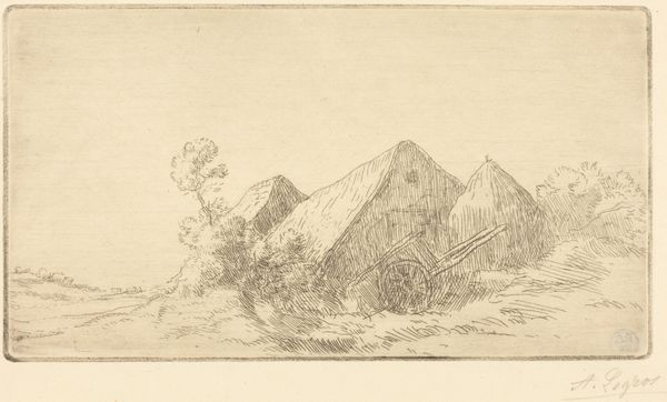 Alphonse Legros made this etching, called "Hovel on a Hillside," likely in France, where he was born. This little image is a fascinating microcosm of the massive social shifts of mid-19th century Europe. At this time, rural populations migrated to urban centres seeking work in factories, or perhaps were pushed off the land by changing agricultural practices. Etchings like this, therefore, show the romanticisation of an agrarian past, and a life close to the land, that was fast disappearing due to industrialisation. We can see how Legros uses the etching needle to create a sense of texture and detail in the landscape, evoking a feeling of nostalgia for a simpler way of life. The institutional history of art at this time is complex, with debates raging about what kind of subject matter was suitable for serious art. For example, was it right to focus on humble rural scenes or to uplift viewers with scenes from classical history? By looking into the history of art institutions and social change, we can better understand the social and cultural forces that shaped the art of this period.