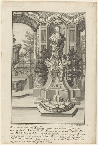 This print, made by Georg Lichtensteger, depicts a fountain with a bust of Bacchus. Although undated, we can place it in the eighteenth century based on the artist’s dates and the print’s style. The image invites us to consider the role of art in shaping social life. The fountain is not merely a functional object but an aesthetic one, adorned with a sculpture of the Roman god of wine. The print suggests the fountain’s placement at the entrance of a garden, implying that this space would have been one of leisure and pleasure, and that this private enjoyment relies on an aesthetic appreciation of art. This kind of garden, common among wealthy Europeans, reflected a desire to display one's wealth, education, and taste. We can look to other prints and garden designs of the time, and to historical accounts, to deepen our understanding of the social and institutional context of this print. In doing so, we see how art helps us to understand the values and priorities of a particular time and place.