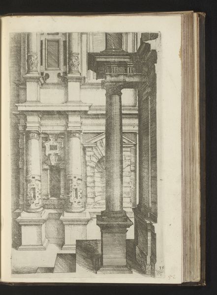 This print of a portal decorated with rustica, awards, and a coat of arms was made by Wendel Dietterlin sometime in the late 16th century. During this time, social identity was closely linked to one's lineage and heraldry. Coats of arms, like the one featured prominently here, were not mere decoration; they were potent symbols of a family's history, status, and claims to power. The very act of displaying such imagery was a declaration of identity, a way of staking one's claim in a world defined by rigid social hierarchies. Dietterlin's detailed rendering invites us to consider the emotional weight attached to such symbols. For those entitled to bear them, coats of arms represented belonging, privilege, and a sense of continuity. The rustica design aesthetic adds another layer of meaning. As a design style, rustica was often employed to convey a sense of strength, stability, and permanence.