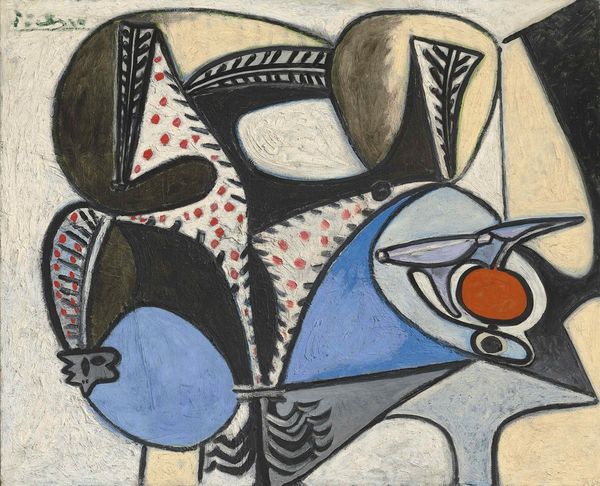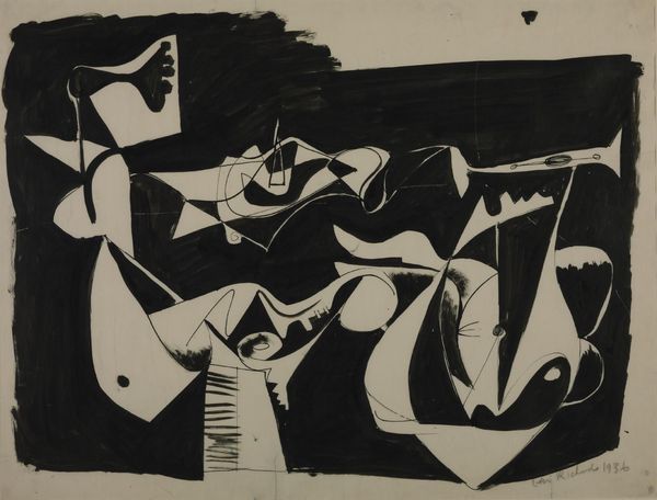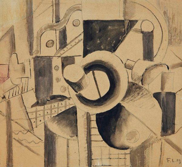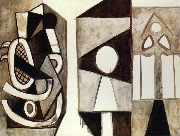 Curator: Looking at Picasso's "Goat’s Skull, Bottle and Candle," currently housed at the Tate, one can't help but consider the historical context of still life and its symbolic weight. Editor: It’s stark, isn’t it? Like a memory dissolving—or maybe solidifying—into pure form. It makes me feel a strange mix of melancholy and…strength? Curator: Still life has often been linked to ideas of mortality and vanitas, but Picasso seems to be pushing beyond those traditional readings through his cubist style. Editor: Yes! The breaking down of forms, the way the skull isn’t just a skull but a collection of planes… it’s like he’s rebuilding the very idea of death. Curator: Perhaps by dissecting and reassembling these recognizable symbols, Picasso is attempting to grapple with the anxieties and uncertainties of his time. Editor: Right. It's not just about death, but about survival, about how we rebuild ourselves—and art—after the world has been shattered. A strangely hopeful image, in a way. Curator: A compelling proposition, to find hope amidst the deconstruction. Editor: Exactly. It's a beautiful reminder of our capacity for reinvention.