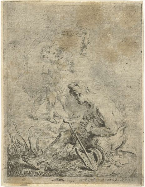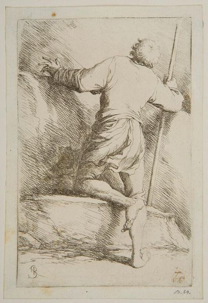 Gaetano Gandolfi rendered this sketch of 'Joshua' in the late 18th century. Gandolfi lived in a time that was steeped in the artistic traditions of the Renaissance and Baroque periods, and the social structures that underpinned them. As we gaze upon Joshua, sword in hand and eyes lifted to the heavens, consider how such a representation might resonate differently across various identities. For some, Joshua could embody the strength and righteous leadership that the Bible describes. Yet, for others, this image may evoke the complex legacy of conquest and displacement that religious narratives have often justified. The choice of depicting Joshua, a figure associated with military campaigns and territorial control, subtly reflects the relationship between power, religion, and artistic expression, especially in the context of eighteenth-century European society. The artist invites us to meditate on the moral complexities inherent in narratives of divine mandate.