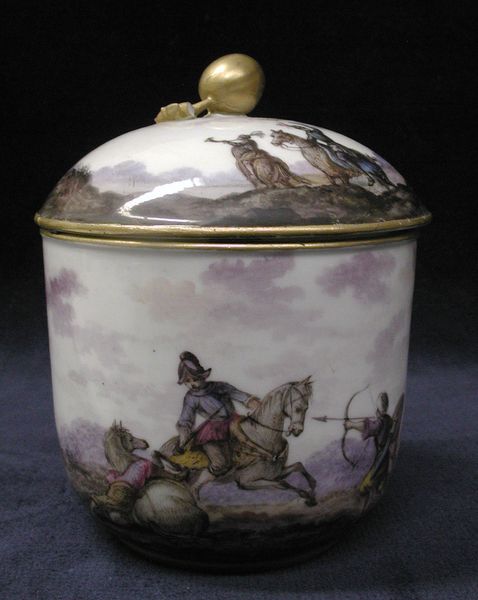 This delicate snuffbox was crafted by Pierre Médard Mothet, its miniature scene rendered in enamel and set in gold. The dominant visual experience is one of contained opulence. The oval form, emphasized by concentric bands of gold and green enamel, creates a sense of enclosure. This directs our gaze towards the central cameo, depicting a classical scene in muted lilac hues. The figures, though small, are rendered with precision. The gold filigree that frames the scene is not merely decorative; it functions as a signifier of wealth and status, typical of the late 18th century. The contrast between the smooth enamel and the textured gold is crucial. It underscores the tension between idealized representation and material reality. Note how the small scale challenges established meanings, inviting intimate contemplation. The snuffbox thus operates as a microcosm of its era. It encapsulates the aesthetic values and social codes of its time. It reminds us that art objects are not just beautiful things but also complex cultural artifacts.