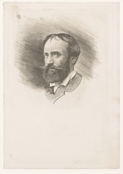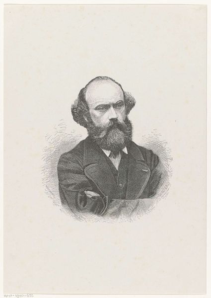 Curator: This is a print crafted with pencil and engraving techniques, dating from around 1836 to 1911. The piece is titled "Portret van I.A. van Eijken" and it is by Willem (I) Steelink. The print captures a refined portrait in profile, of I.A. van Eijken himself. Editor: My immediate impression is of understated dignity. The lines are incredibly delicate, giving the figure a sense of gravitas without being imposing. The subject seems rather introspective. Curator: Considering its creation during the 19th century, that somber air seems quite fitting, wouldn't you say? Portraiture then served specific societal functions – commemorating status, ancestry, and lineage for largely privileged people. Editor: Precisely! How was someone immortalized? And, of course, who even *had* access to immortality via artistic rendering? We're immediately talking about power dynamics reflected in a single piece. Curator: I think we can’t ignore the detail within this work; it highlights Steelink's remarkable technique with mixed media, as his deftness brings forth every detail to celebrate, perhaps to aggrandize. Editor: Agreed. Notice the angle of the gaze. Why does it appear so serious? Perhaps van Eijken bore burdens we cannot know, societal pressures of maintaining image and dominance in a colonial world. Curator: It’s an incredibly evocative rendering. It pulls you into an era defined by its own distinct values, which can differ, to some extent, from today's socio-political climate, despite our contemporary progress. Editor: Yes! Though technique is superb, our interrogation must not stop at formal qualities. Instead, we should acknowledge who had access and visibility versus who remained hidden by such cultural systems. Curator: Indeed. A work like this serves not only as a reflection of individual identity but also mirrors societal structures. Editor: In that sense, engaging critically with these images empowers viewers toward awareness concerning historical privilege, inviting crucial discussions about power representation. Curator: Thinking about how an image like this contributes and affects culture helps underscore what a complex relationship we all have with it. Editor: Let's consider who, precisely, had their images captured, and just how meticulously.