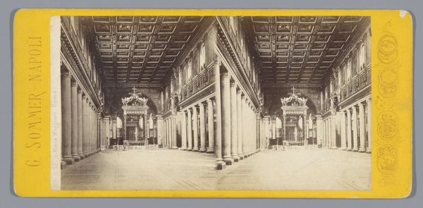 Ernest Eléonor Pierre Lamy created this stereoscopic image, ‘Interieur van een salon in het Palais des Tuileries te Parijs’, a view of the Salon de la Paix in the Tuileries Palace. Lamy’s photograph invites a reflection on the cultural and political meanings embedded in architectural spaces. The Tuileries Palace, originally built in the 16th century, was a symbol of French royalty and power. This interior view, with its grandiose scale and elaborate ornamentation, speaks to the values of the ruling class. Stereoscopic images like this one were incredibly popular in the mid-19th century, offering viewers an immersive experience. While appearing neutral, the image is framed within the social structures of the time. Who had access to such spaces, and whose labor was it that created and maintained this opulence? This photograph can serve as a starting point to examine how spaces reflect and shape social identities and power dynamics. As you consider this image, reflect on what stories are told through architecture, and whose perspectives are often left out of the frame.