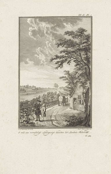This etching, "Vrouw op een toren bij de wallen van Zutphen", was made by Reinier Vinkeles. Note the tower, a form that has resonated through centuries, from the Tower of Babel to medieval keeps. Here, it is topped by a woman gazing through a telescope, suggesting observation and a yearning for knowledge. This echoes the allegorical figure of Prudence, often depicted with a mirror or telescope, symbolizing foresight. Consider, too, the trees lining the riverbank, framing the scene. They are reminiscent of the "arbor vitae," the tree of life, a symbol of immortality and connection between heaven and earth, appearing in numerous cultures and mythologies. This motif, charged with the hope of continued life, appears in countless forms from ancient Egyptian art to Klimt's paintings. Such persistent symbols reveal our collective unconscious, shaping how we perceive and emotionally respond to the world around us.