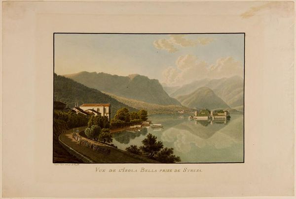 Editor: Here we have Peter Birmann's "Blevio sul Lago di Como," a beautiful sight captured with such detail. It feels like a carefully arranged stage, doesn't it? What do you notice first? Curator: It feels almost like a dream, doesn't it? Birmann invites us into this landscape, but it's not just a pretty picture. It's a constructed view, playing with light and shadow to create a sense of depth and… almost, idealized serenity. Editor: Idealized, how so? Curator: Notice how the people are placed? It's as if we're peering into a world crafted for contemplation. It makes me wonder, what was Birmann truly trying to say about nature, about us? Editor: I hadn't thought about it that way, but it really is like a little staged drama. A romantic snapshot.