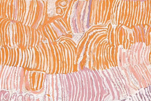 Curator: Right, let’s talk about Makinti Napanangka's "Kungka Kutjarra (Two Women/Hair String Ceremony)" from 2008, made with acrylic paint. My first impression? A kind of pulsating rhythm, almost hypnotic. It feels very connected to the earth, somehow both raw and sophisticated at once. Editor: You know, it strikes me how this piece fits within a broader discussion about the commercialization of Indigenous art. We see this push to elevate these cultural objects within Western gallery settings, often distancing them from their original ritual and social contexts. The market plays a big role in dictating the value and meaning of this work. Curator: That's such a key point! And yet, despite that, I sense something incredibly private in this, it feels deeply held. The repetitive lines – it's like watching someone chanting, utterly lost in their world. The subtle palette creates this shimmering quality that I can’t help but connect with. It feels so incredibly grounded. Editor: The composition also challenges typical Western art aesthetics. Instead of foreground and background, there's an all-over quality that decentralizes the visual field, kind of resisting our gaze, which is interesting. Curator: Yes! It asks you to enter the painting rather than simply observe it. It is like the landscape folding into itself. I think that has always fascinated me, you see a place represented, not as scenery, but as something lived. The string ceremony it depicts, feels evoked rather than shown. What a paradox. Editor: Exactly! This work reminds us that art isn't produced in a vacuum, which brings us back to thinking about how colonialism and the global art market have influenced how Aboriginal art is displayed and consumed. What is at stake for the community with each piece placed in our Western museums? Curator: An ethical question. Always. What do you think we, the spectators, take away from standing in front of it now? Is the cultural exchange truly a two-way stream, or just another kind of extraction? Editor: Hopefully a seed for greater curiosity and reflection, definitely. And maybe a renewed awareness of the stories behind the objects and what our role can be in respecting those origins. Curator: To me, it will continue to evoke the quiet power of ritual, memory, and of women.